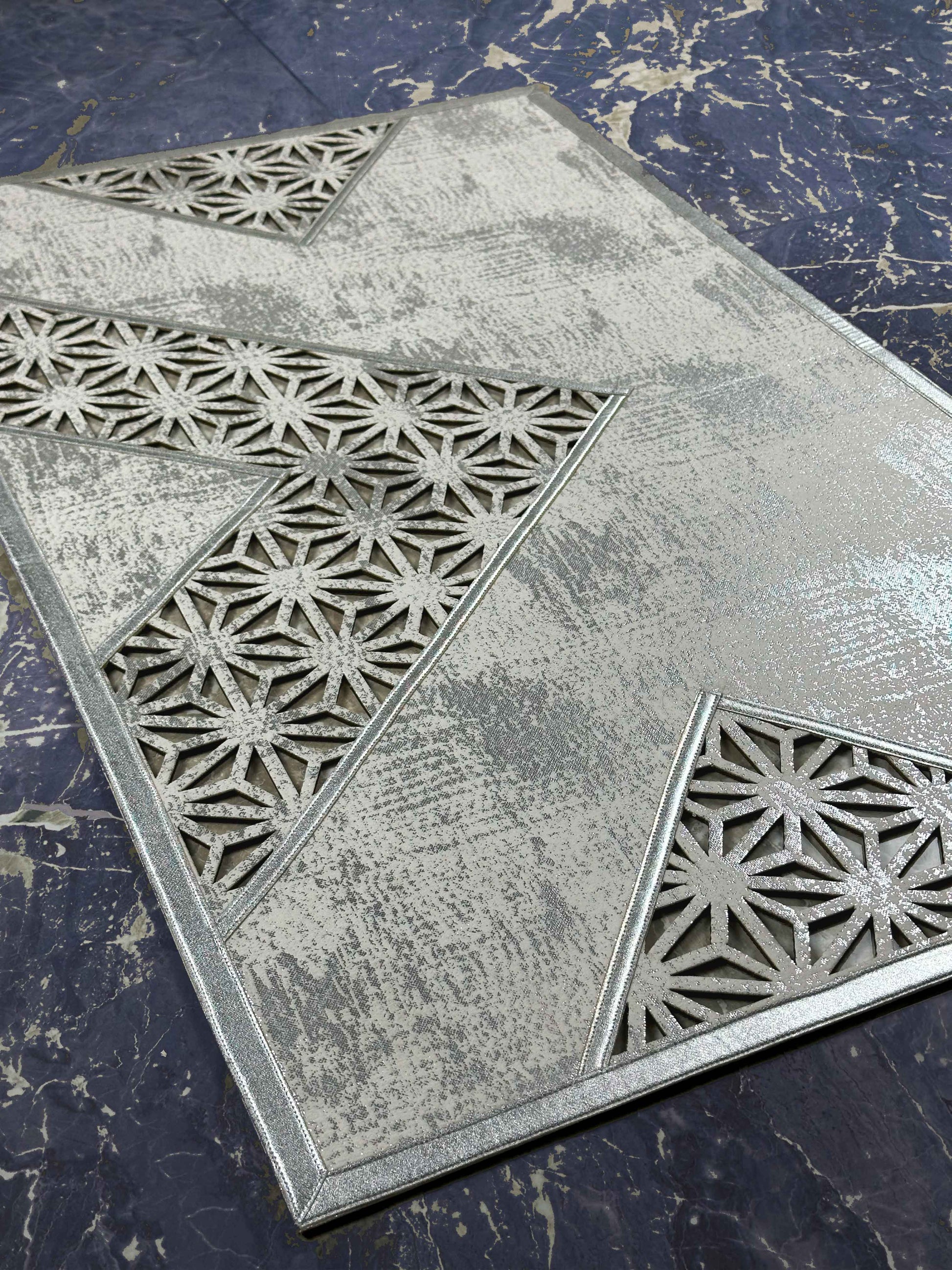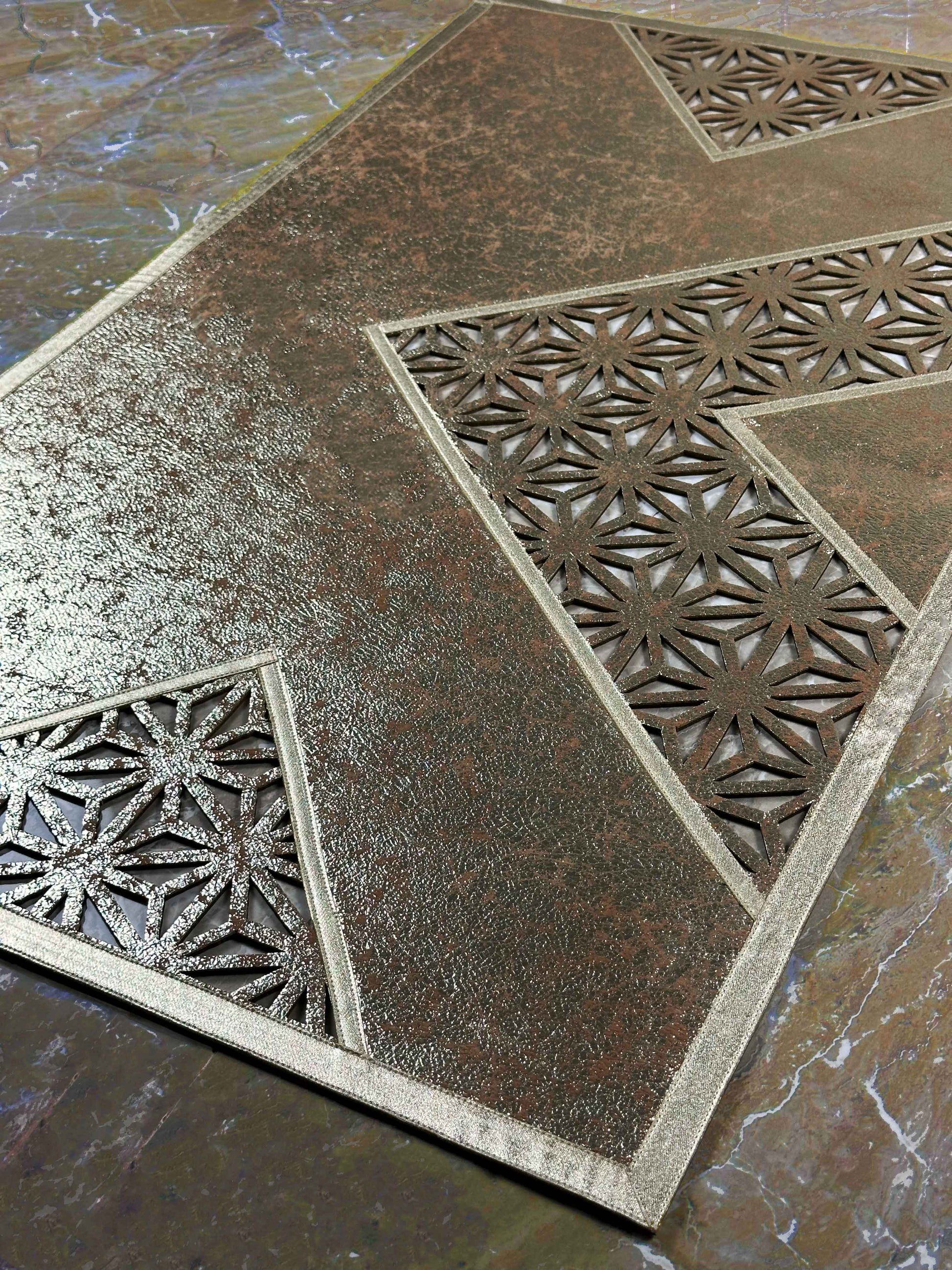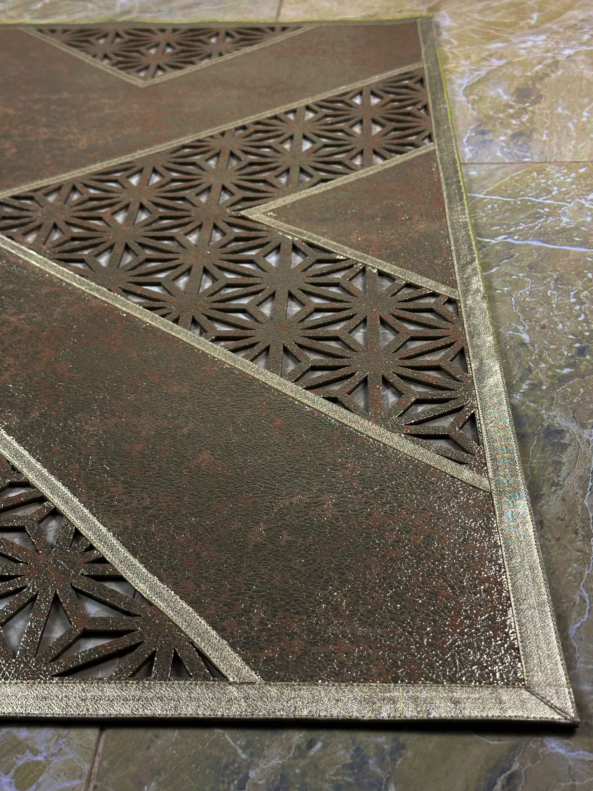 This design is made of our high quality Turkish Velvet base, with carefully added Artificial Leather to draw beautiful and modern geometric patterns.