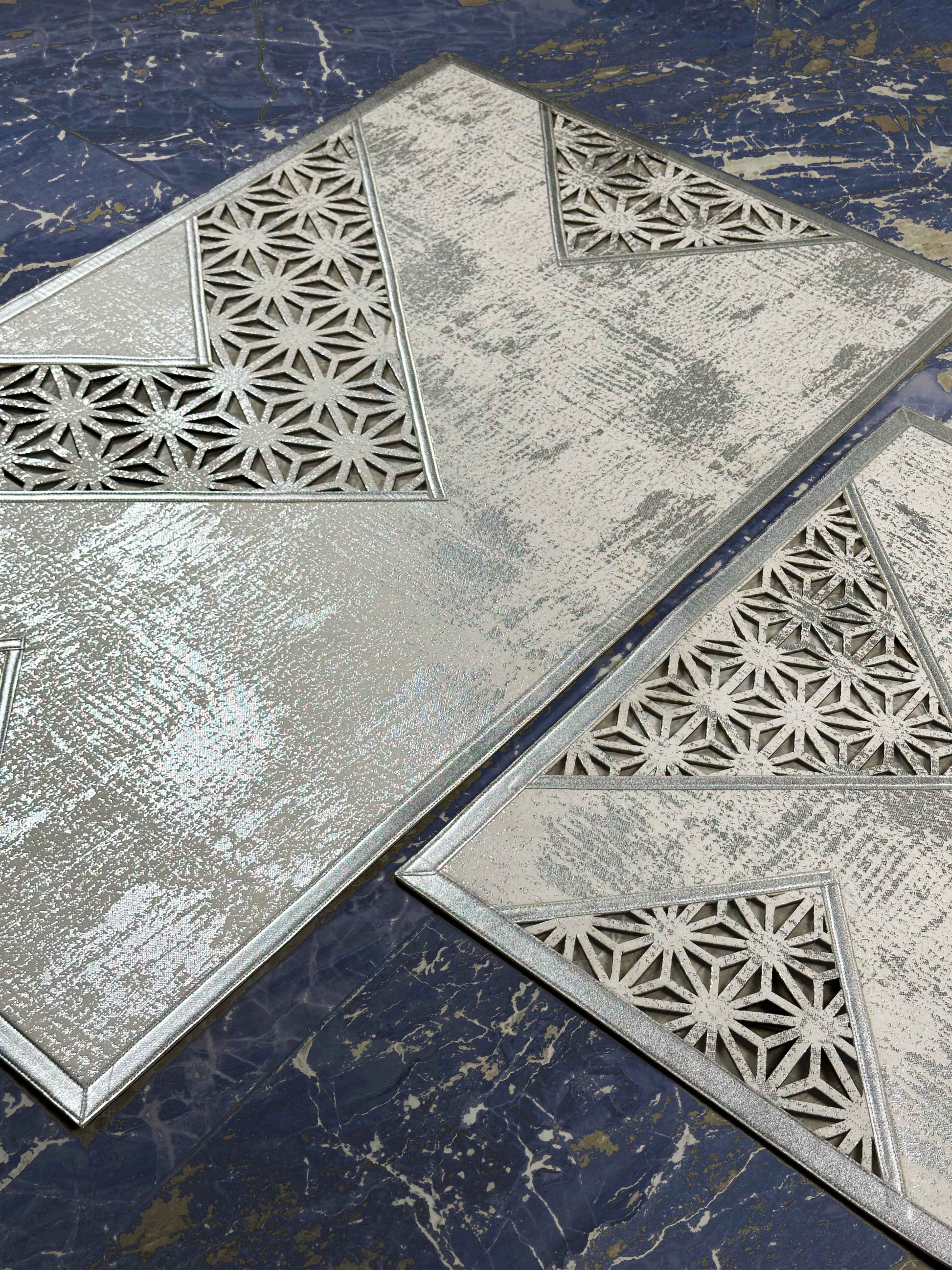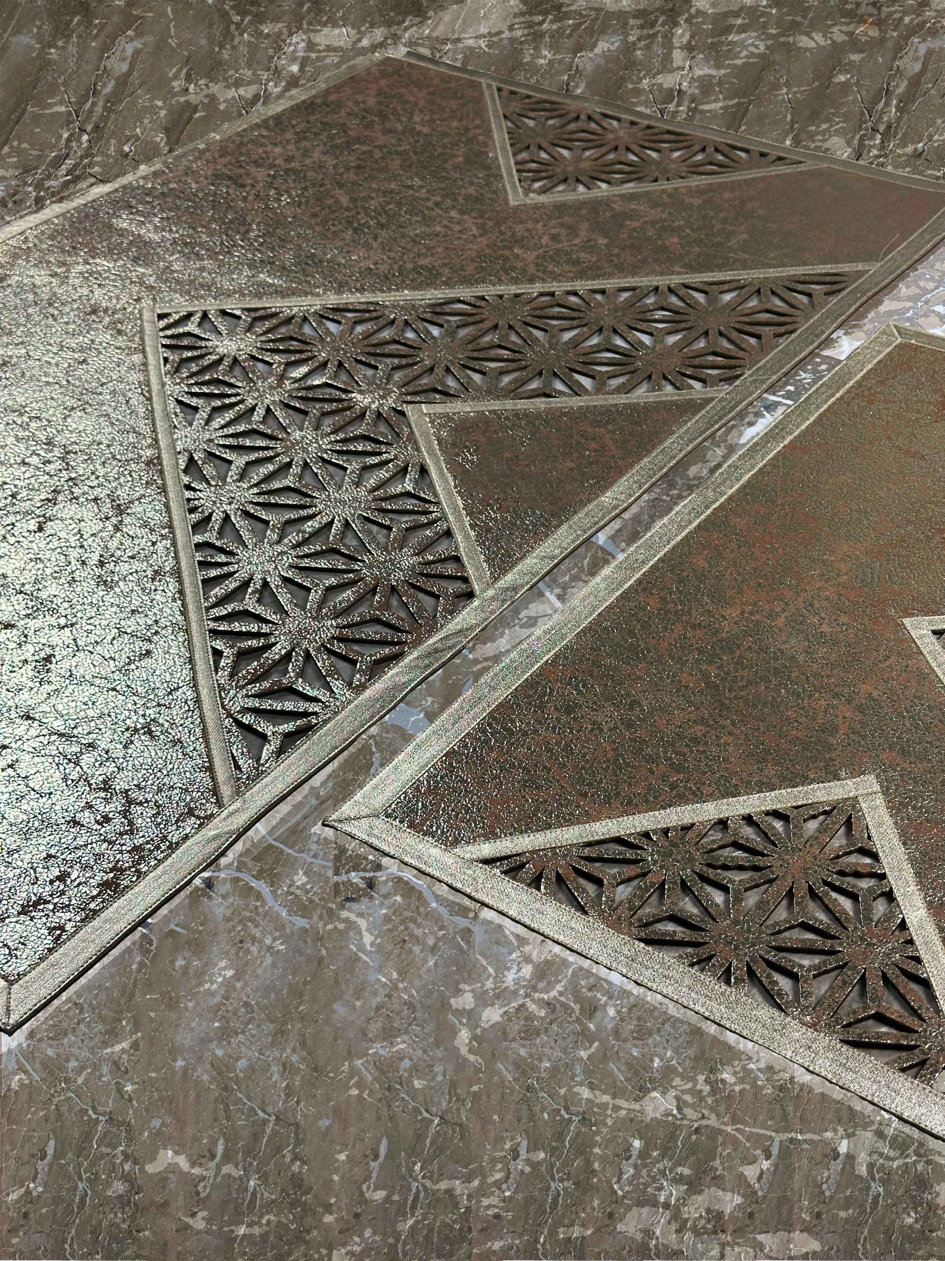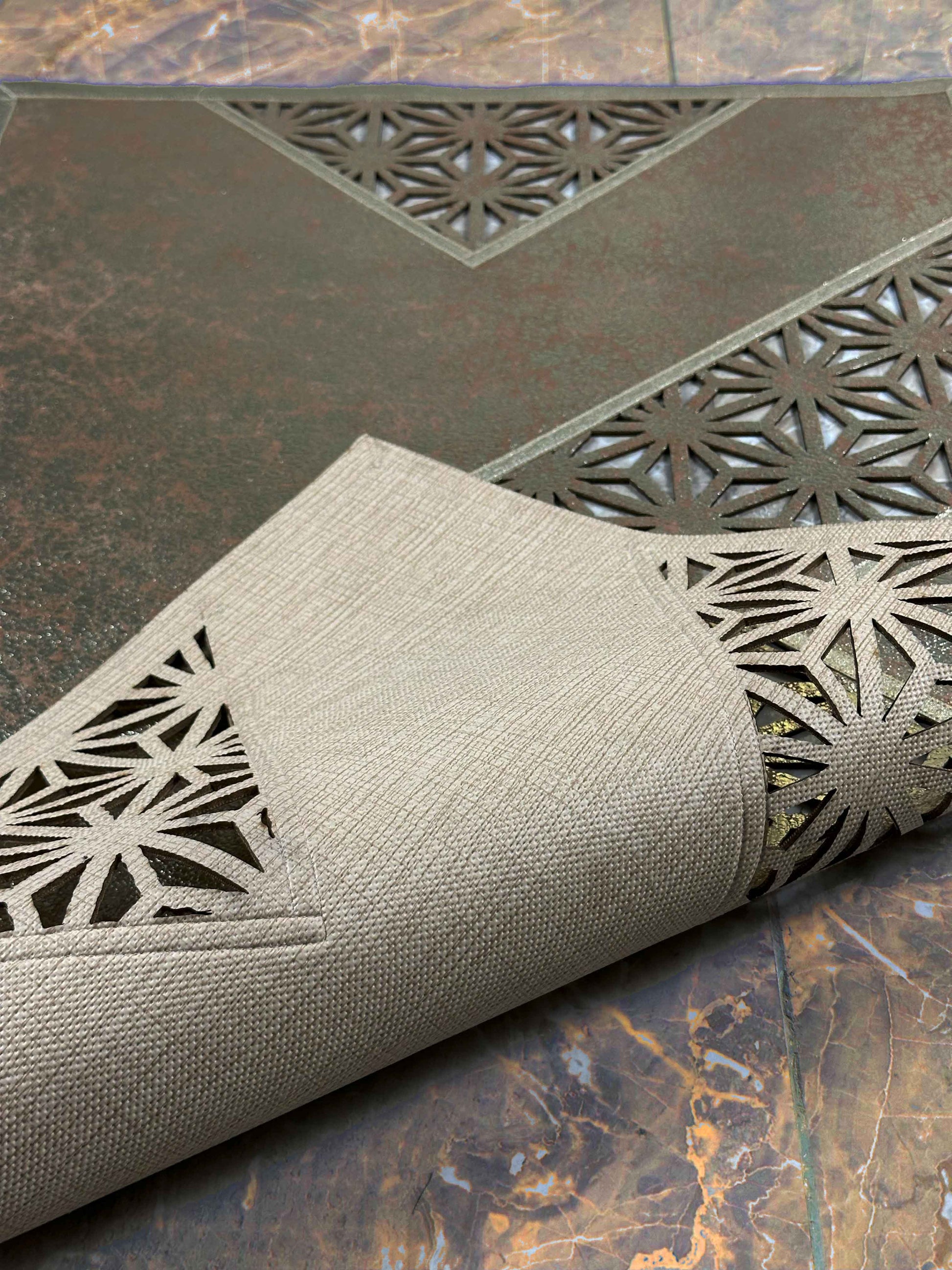 This design is made of our high quality Turkish Velvet base, with carefully added Artificial Leather to draw beautiful and modern geometric patterns.