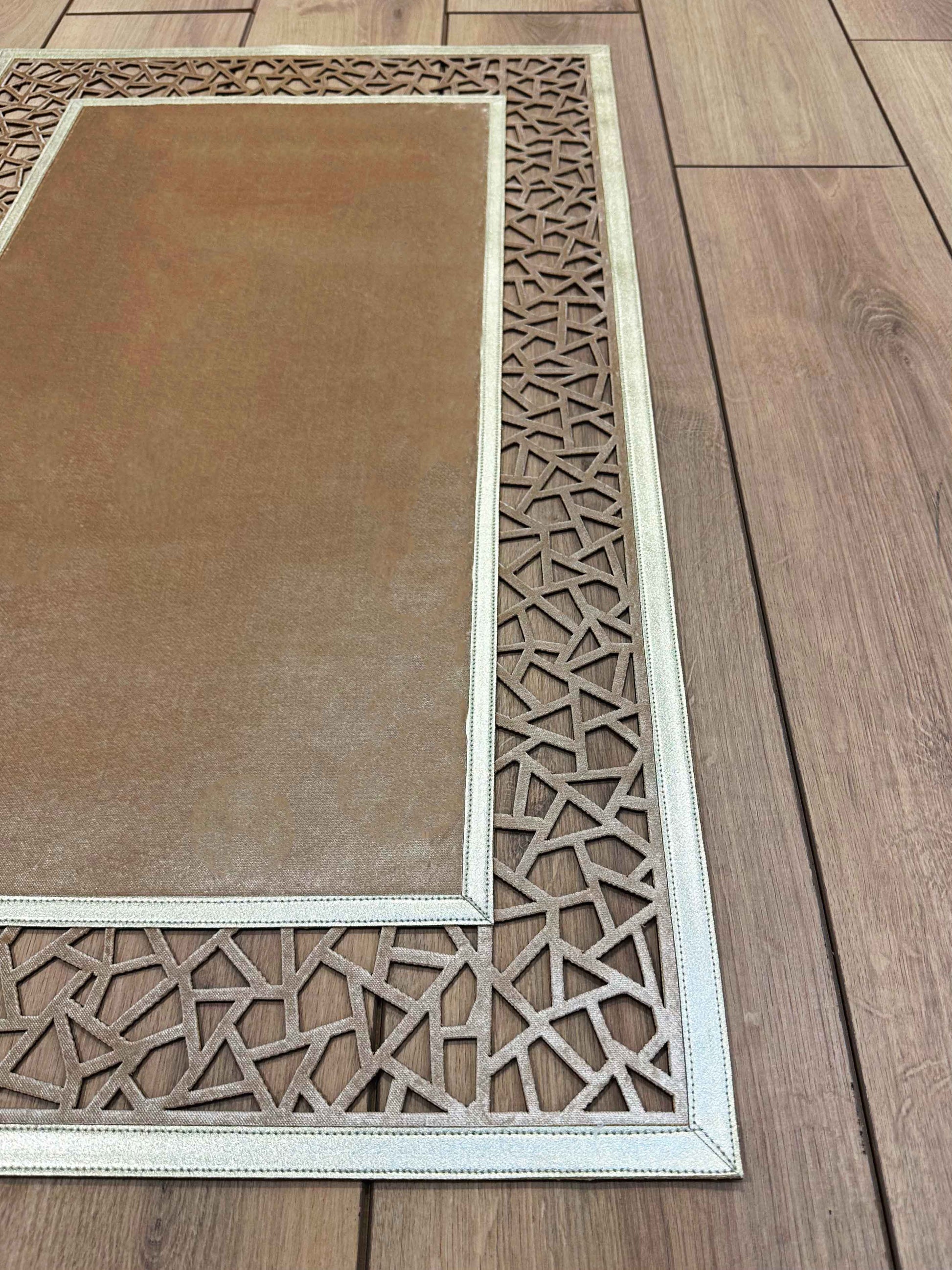 This design is made of our high quality fireproof Velvet base, with carefully added Artificial Leather to draw beautiful and modern striated borders.