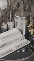 The Anka Bath Set ornamented with beautiful Greek Key Style Patterns will be the perfect addition to any Luxury Bathroom.